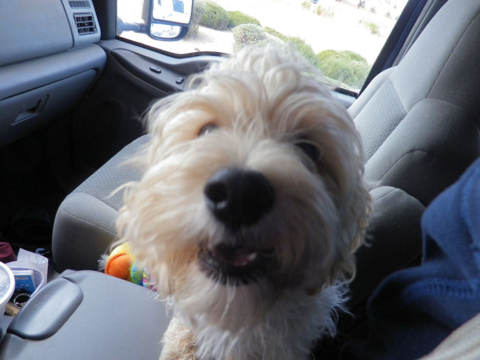 He ate about half of his burger and then snuggled up next to me for the ride home. We stopped a couple of times for him to pee.